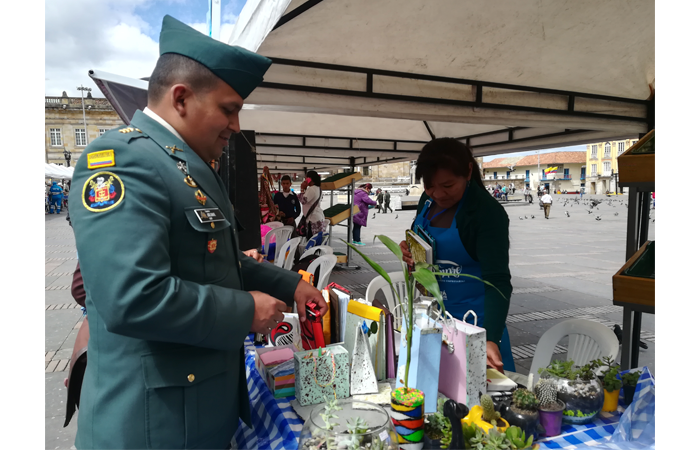 Bogotá D.C. Las madres de los militares y policías, víctimas del conflicto armado, con su proyecto Color y Esperanza por Nuestros Héroes desde hoy, Día Internacional de la Paz, hacen parte de la Feria de Unidades Productivas Paziempre, organizada por la Alta Consejería para los Derechos de las Víctimas, la Paz y la Reconciliación, que se lleva a cabo en la Plaza de Bolívar de Bogotá.