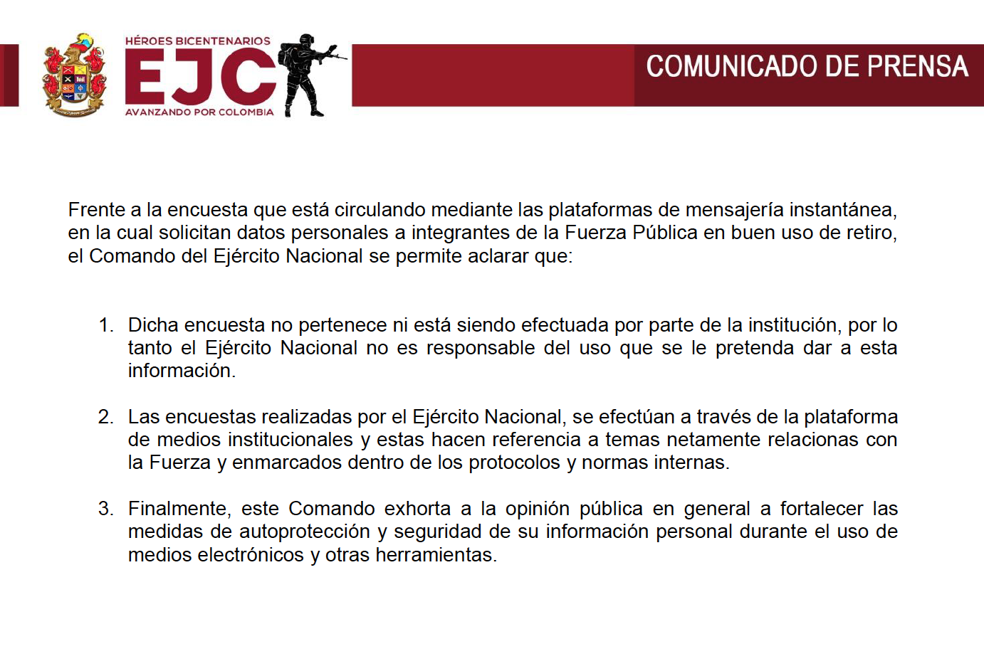 Comunicado del Ejército