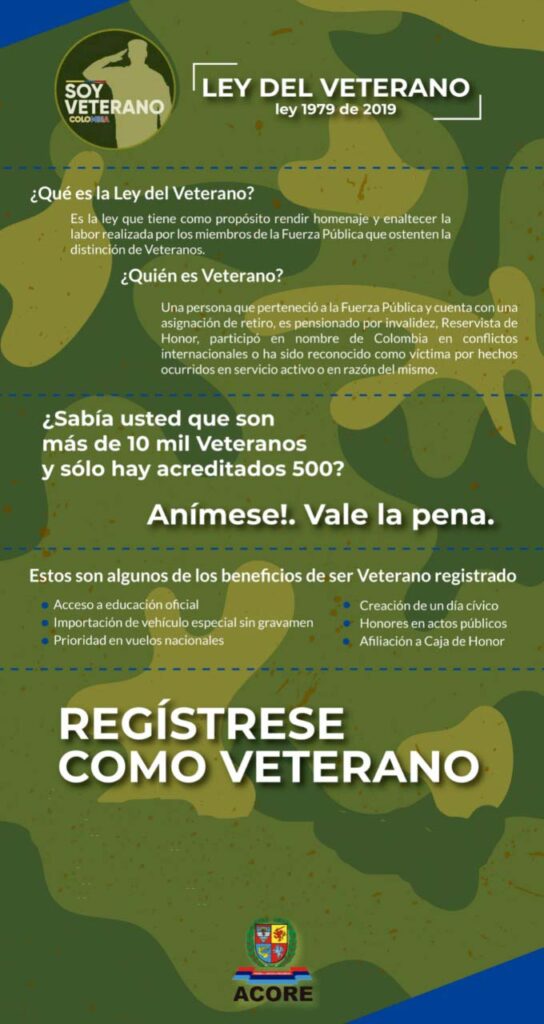 Puedes registrarse como veterano en el siguiente link: https://portalapp.mindefensa.gov.co:8445/veteranos/#/security/register