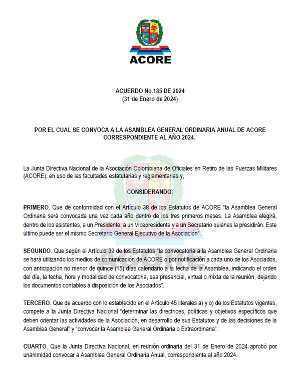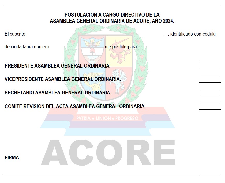 Para fines pertinentes a la Asamblea General Ordinaria de ACORE, nos permitimos adjuntar todos los archivos necesarios para su consulta y conocimiento.