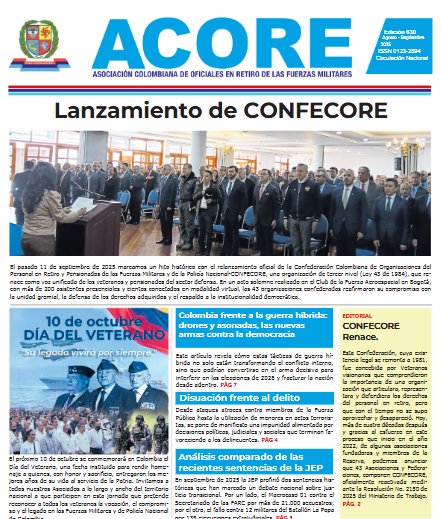 En un escenario complejo que atraviesa Colombia, en una coyuntura política y social complicada, donde el equilibrio de poderes, el respeto por la institucionalidad y la seguridad nacional enfrentan múltiples desafíos, se reactiva la Confederación Colombiana de Organizaciones del Personal en Retiro y Pensionados de las Fuerzas Militares y de la Policía Nacional (CONFECORE), que representa mucho más que un acto jurídico: es un llamado histórico a la articulación, al fortalecimiento gremial, al posicionamiento de la voz del Veterano y al compromiso con Colombia desde la Reserva de la Fuerza Pública.