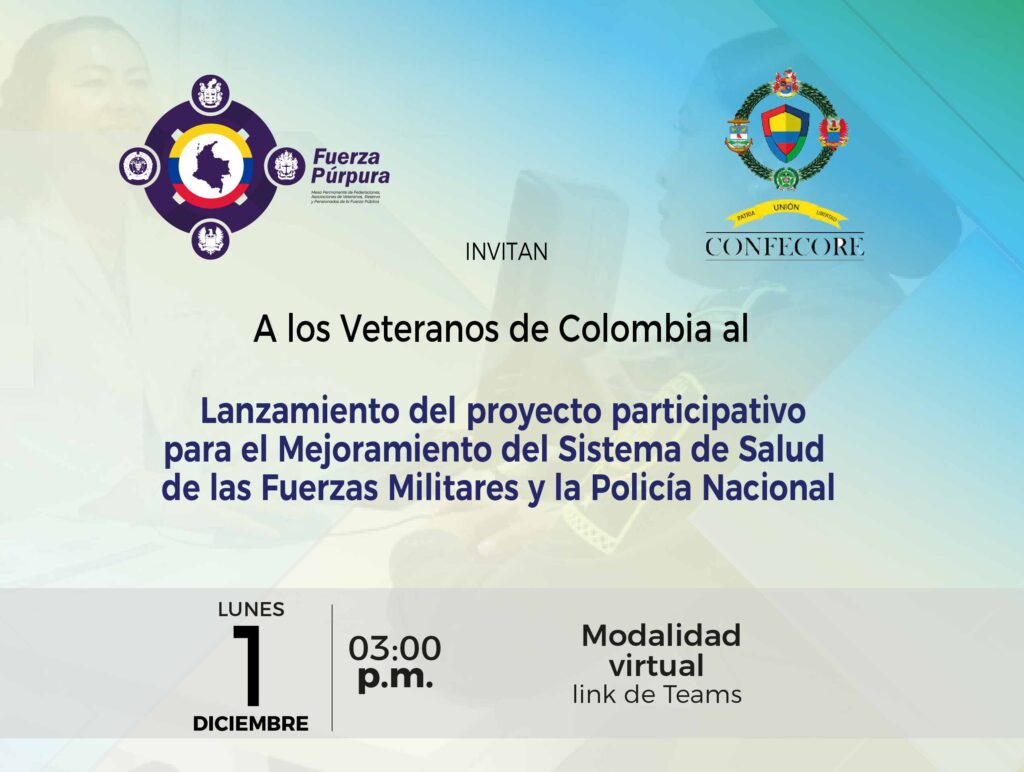 Invitamos a todos nuestros Asociados, al lanzamiento del proyecto participativo para el mejoramiento del Sistema de Salud de las Fuerzas Militares y la Policía Nacional.