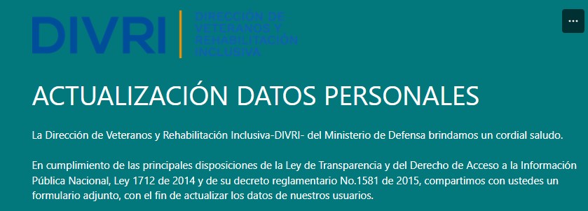 Apreciados Asociados, hacemos extensiva la invitación de la Dirección de Veteranos y Rehabilitación Inclusiva, de actualizar sus datos personales a través del siguiente link https://forms.office.com/r/TRgU3zTucH Se recomienda que el correo electrónico sea personal, no de papelerías u otros terceros, lo anterior para que se pueda aportar al área de sistemas MINDEFENSA para validación y puesta […]