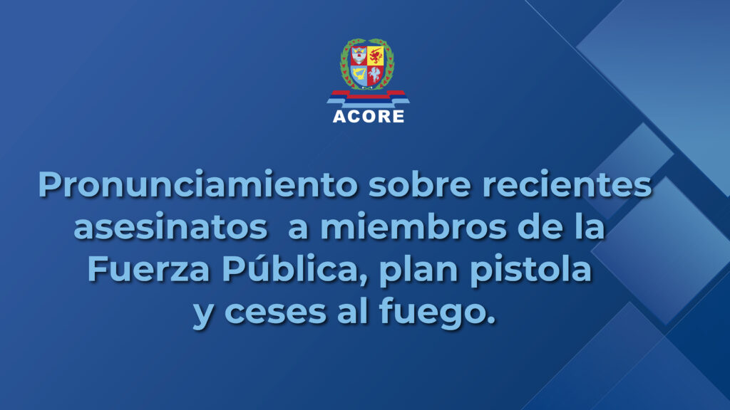 Pronunciamiento sobre reciente atentado terrorista contra miembros de la Fuerza Pública, plan pistola y negociaciones en el marco de la «paz total». Desde ACORE rechazamos categóricamente cualquier tipo de cese al fuego con organizaciones criminales. Estos mecanismos solo son válidos cuando la negociación ha alcanzado avances significativos y se demuestra una verdadera voluntad de paz, […]