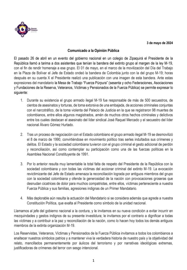 El pasado 26 de abril en un evento del gobierno nacional en un colegio de Zipaquirá el Presidente de la República llamó a tarima a dos asistentes que tenían la bandera del extinto grupo al margen de la ley M-19, con el fin de rendir homenaje a ese grupo. El 01 de mayo, en el […]