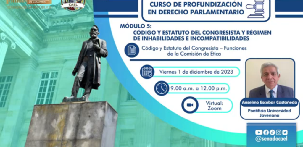 El Mayor (R) Anselmo Escobar integrante de la Junta Directiva Nacional de la Asociación participó como expositor en el Curso de profundización en derecho parlamentario. Compartimos la sesión de este modulo organizado por el Centro de Investigaciones y Altos Estudios Legislativos CAEL.