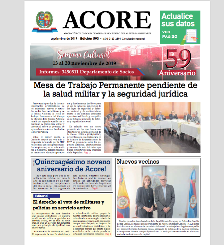 Acore, en cumplimiento de lo establecido en la RESOLUCIÓN No.003 DE 2019 (12 de noviembre de 2019), POR LA CUAL SE CONVOCA A LA ASAMBLEA …